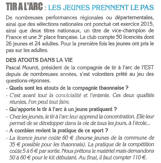 La compagnie des archers de Thaon-les-Vosges vous souhaite à tous un Joyeux Noël et de très bonnes fêtes de fin d’année en espérant que l’année 2016 vous apportera joie et bonheur autour de notre grande famille du tir à l'arc.